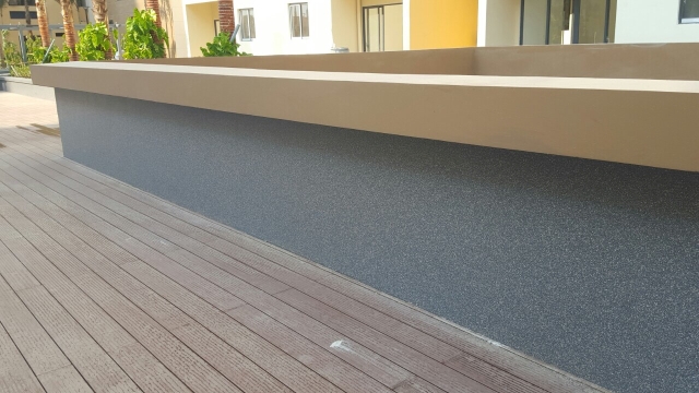 Thi công sơn giả đá bằng thiết bị súng phun áp lực, tạo độ bám dính tốt và chất lượng cao về mỹ thuật cho sản phẩm