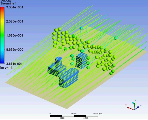 Hình minh họa Phân tích dòng khí động đi qua nhóm các tòa nhà cao tầng
